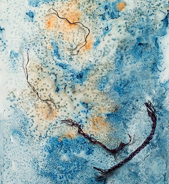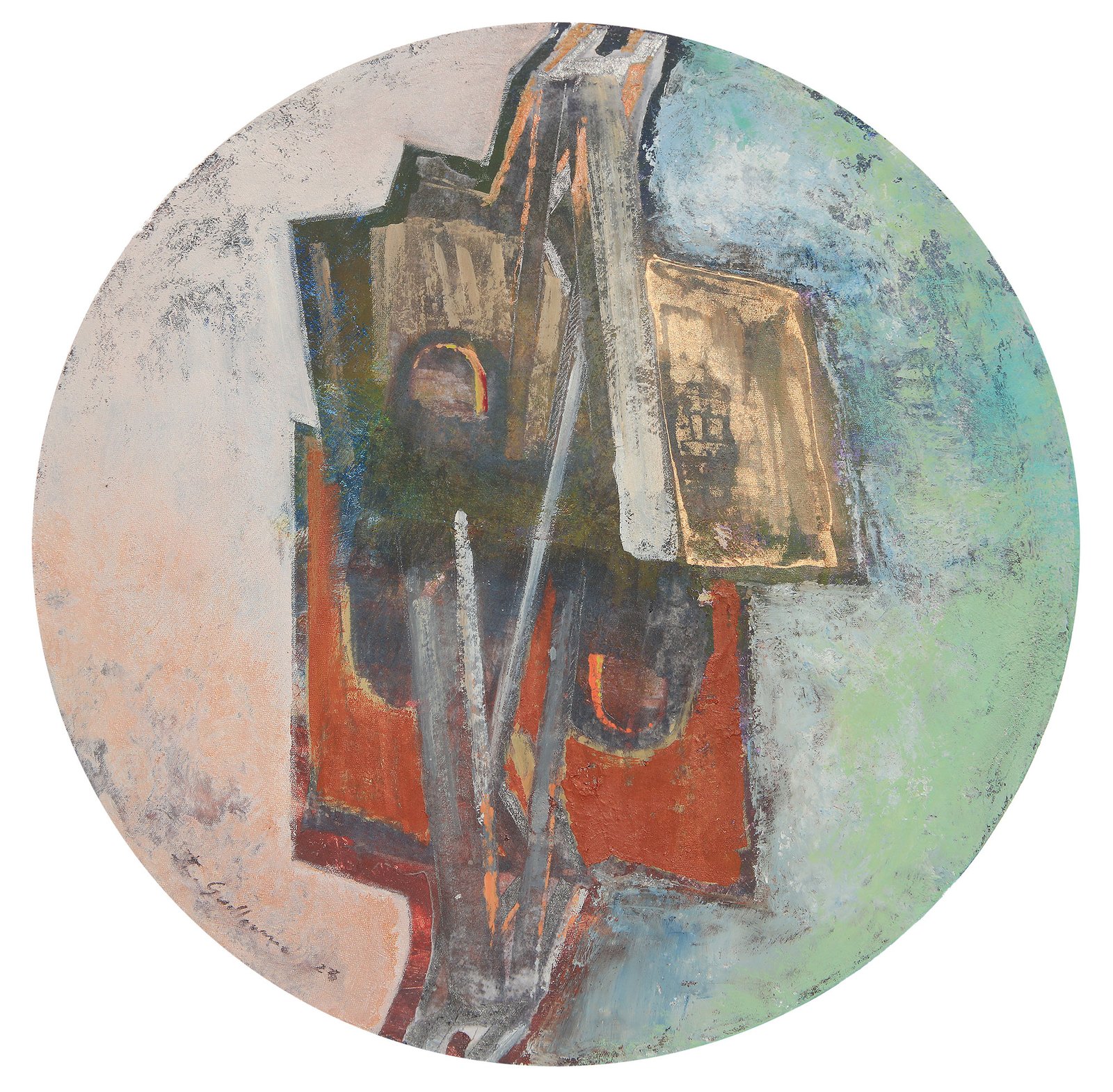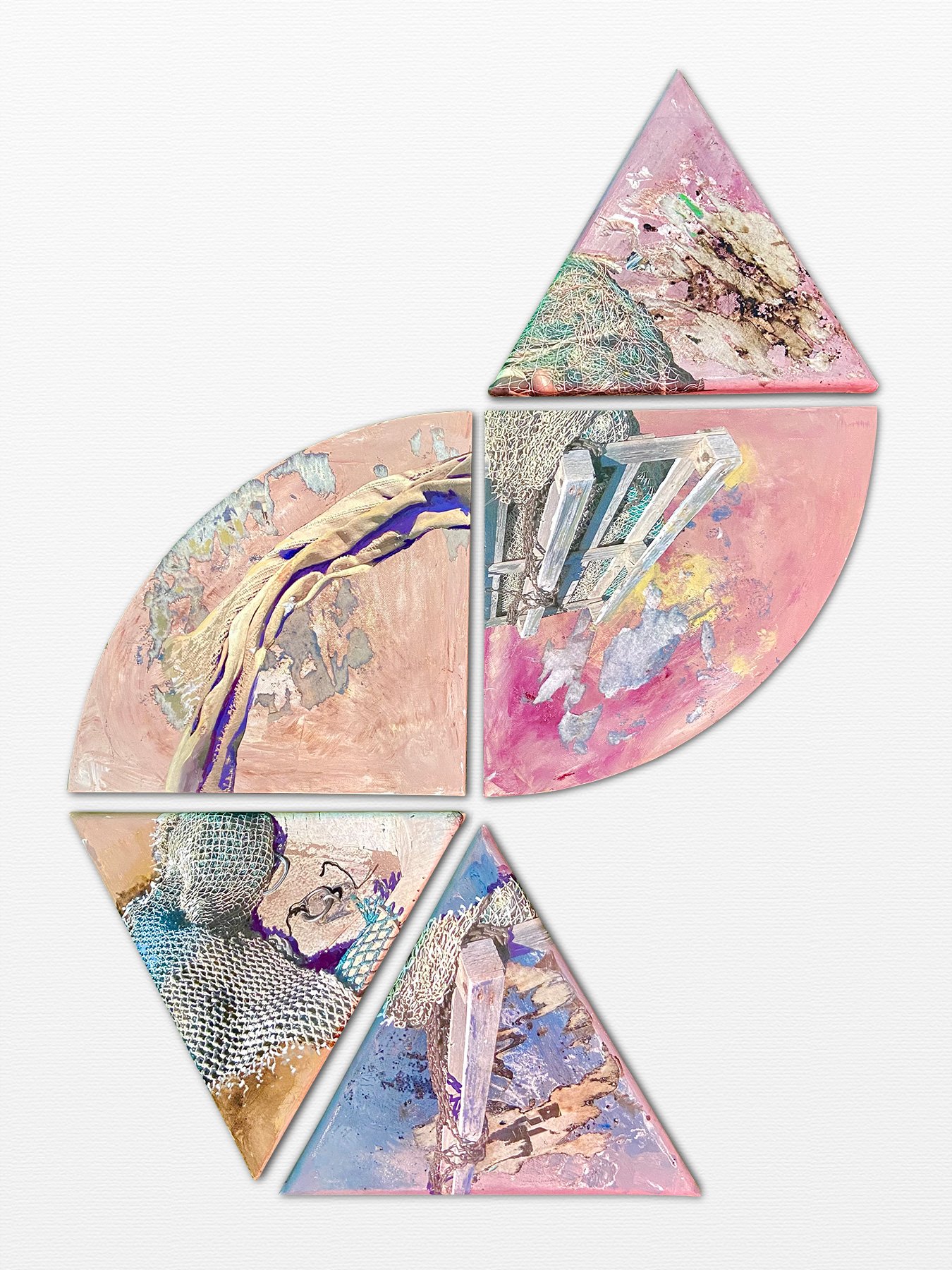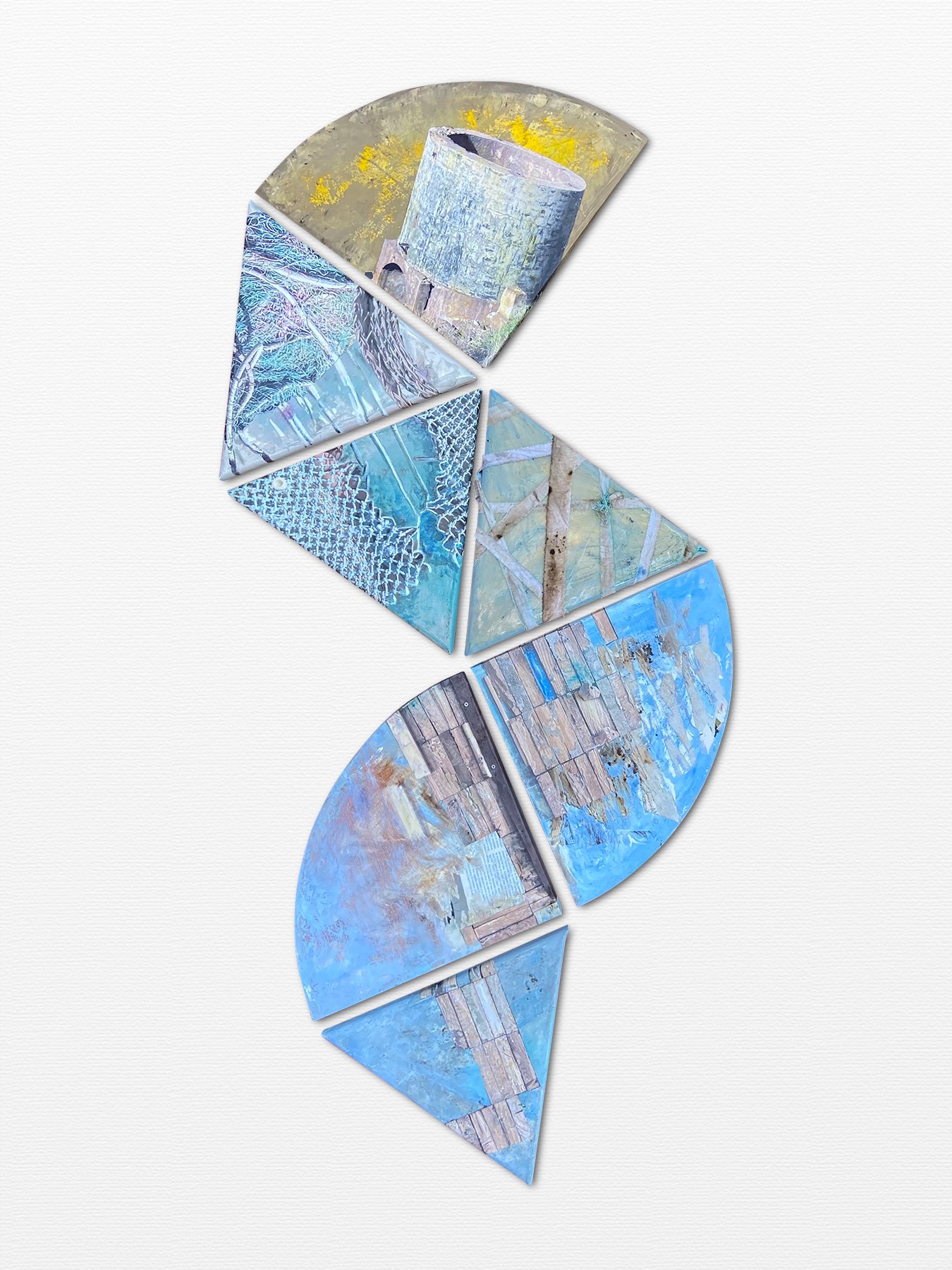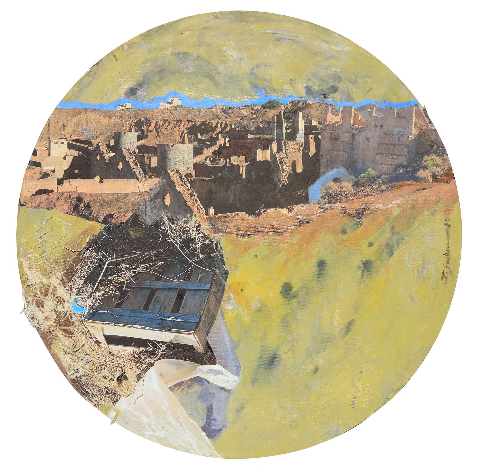 La forma circular se asocia con lo perforado y con los túneles de la tierra. Evoca el recuerdo de épocas difíciles, pero también de aquellas que trajeron prosperidad a nuestras tierras. Al contemplar este formato redondo anclado en la pared, se vislumbra el rostro de la luna con sus cicatrices y los metales incrustados en los poros de la piel terrestre. Se perciben vestigios de vida, impregnados de colores y pigmentos que reflejan el paisaje que llevas en la retina. Esa retina y esa memoria te transportan a recuerdos de conexión con la tierra, tu tierra.